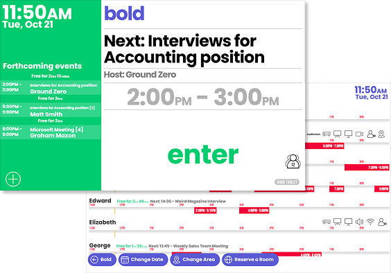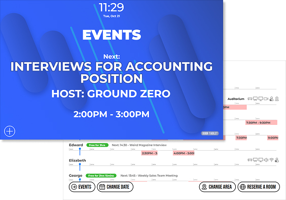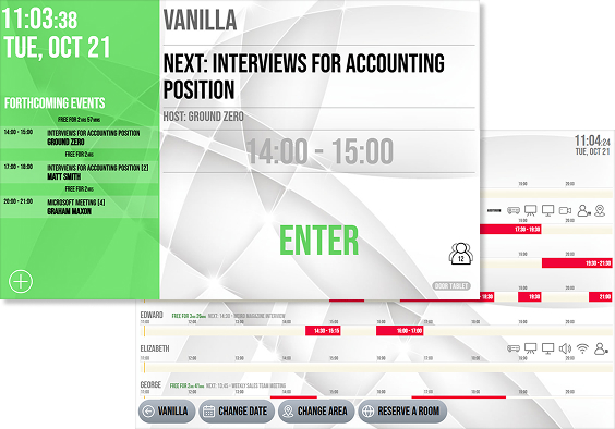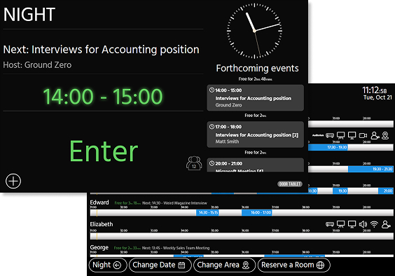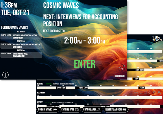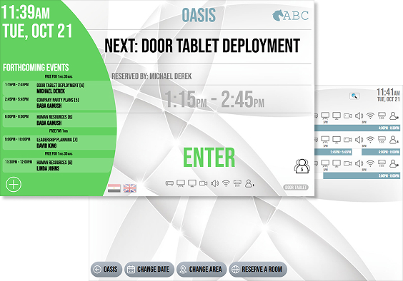 Interact with our LIVE Door Tablet demo system. Get a clear idea of what Door Tablet can offer in terms of room booking and workspace management.