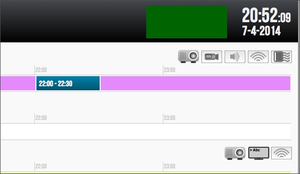 Due to a fault in the Android rendering engine, placing background images at the top right corner of the display is often problematic. We resolved this issue by adding two empty divs which you can use both in the meeting space and Cluster Displays. Use the following CSS in your own CSS and adjust as needed. As you can see below, the logo in the Cluster display will be placed a bit further to the left by setting its distance from the right edge to 160px;
