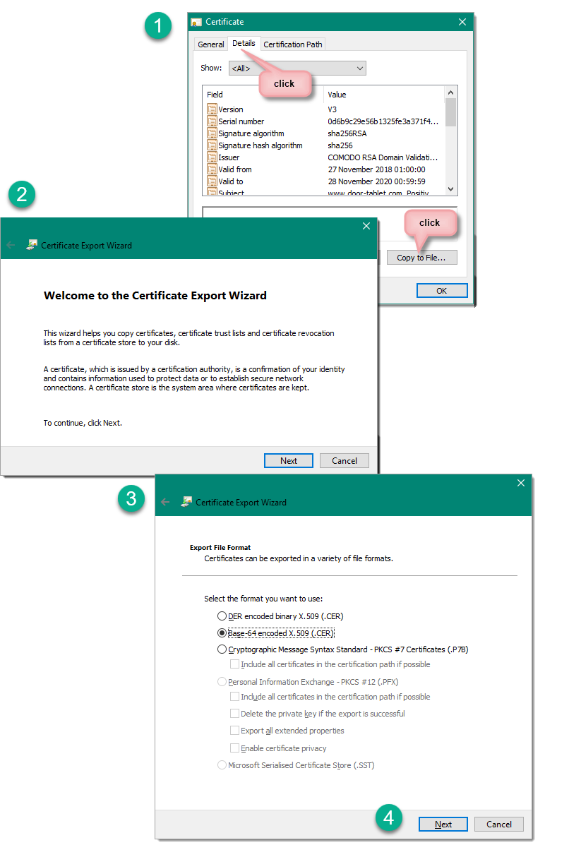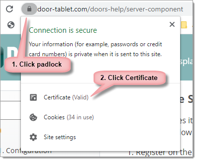 There are few ways to obtain the certificates you will need to install in the Door Tablet certificate store: