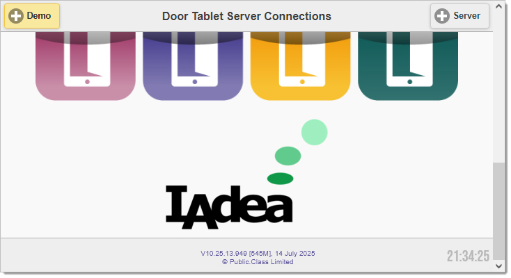 As common with all of the Door Tablet end points, the application provides a wide range of features. These are described fully in chapter 8 above. In addition, the following are specific features of the IAdea hardware.