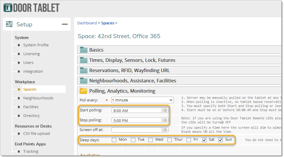 - Power saving: Door Tablet will turn the screen and LED bars off according to your schedule