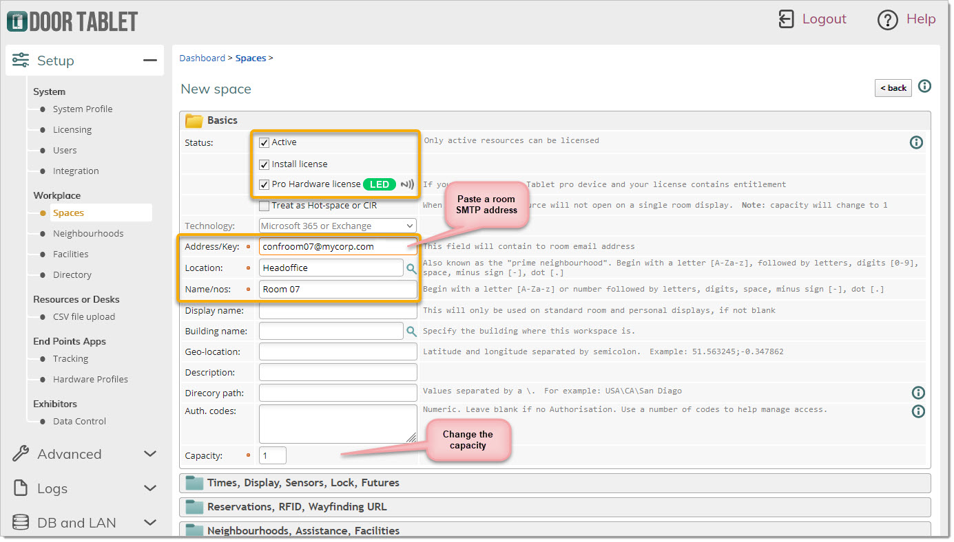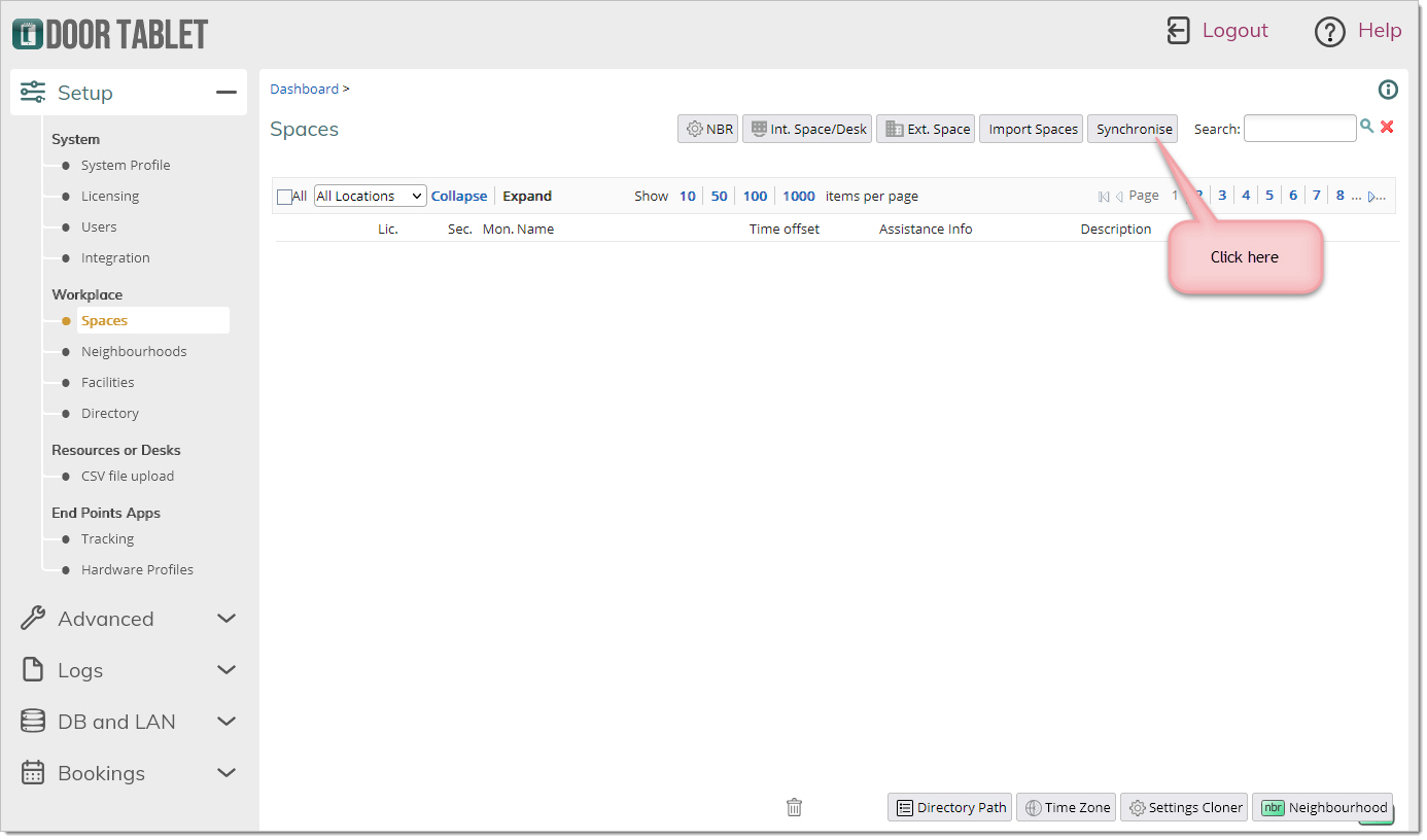 Note: from version 10.25 of the Door Tablet server and the new availability of Spaces API calls, you can now fully synchronise with the platform to get your rooms listed in Door Tablet.