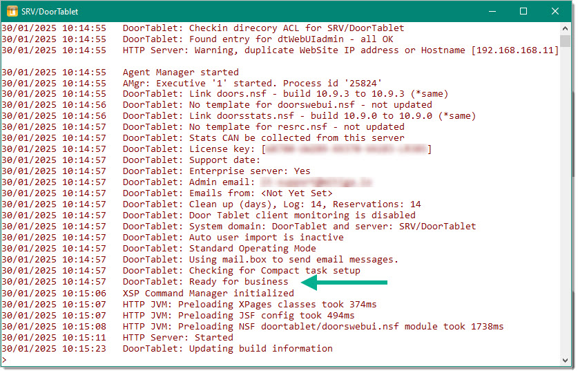 5. Once it started and the Door Tablet tasks reports its ready, issue a console command