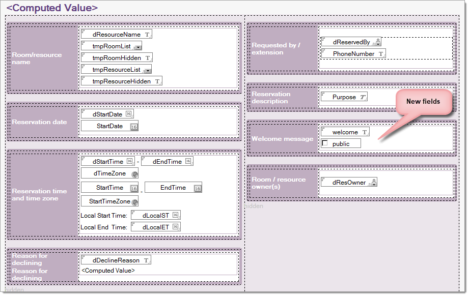 In the "Reservation" and "New Reservation" forms you need to add two fields, namely "welcome" and "public", as showing below: