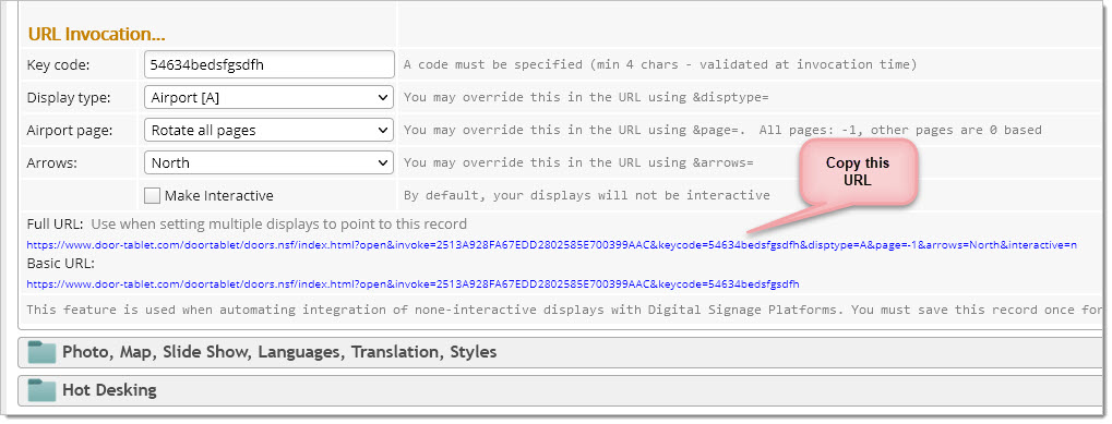 2. In Door Table neighbourhood settings, copy the Wayfinding URL created for you, with your choice of format... Airport and People display are the most popular ones but of course you may use others