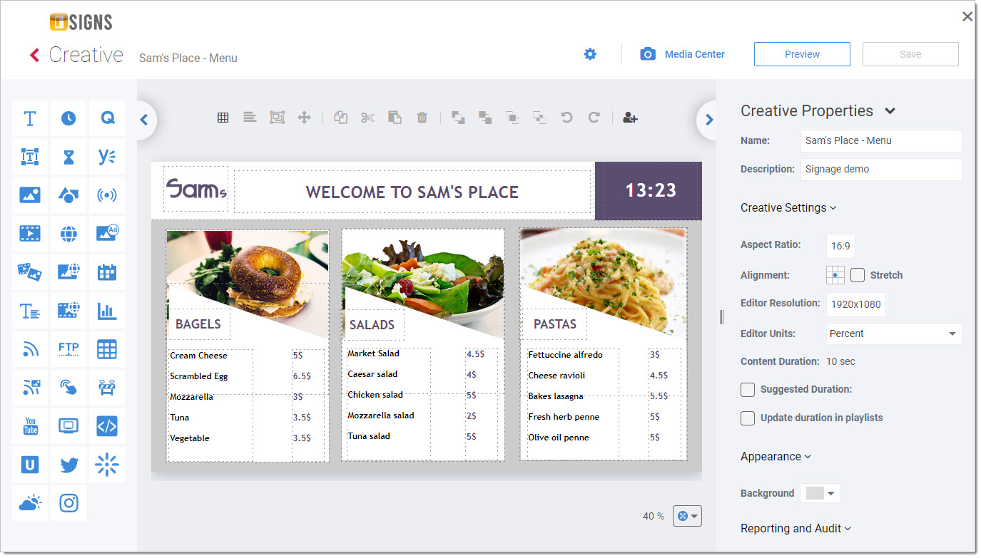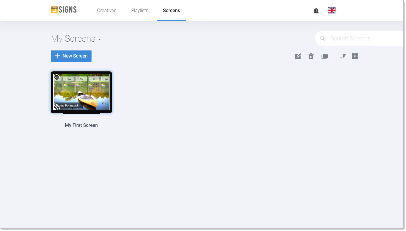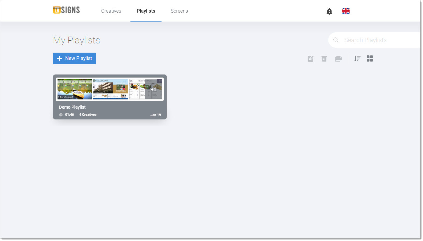 When you are done creating your "Creatives" you can put them all together in Playlists. Playlists are assigned to screens, which become selectable from players.