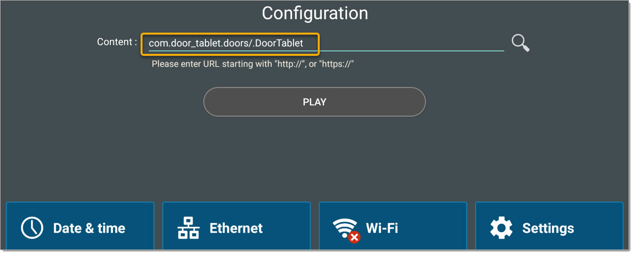 Note: Door Tablet runs as native Android app on this device. The activity launcher you will specify later is not a URL. It will be, in cASe SenSitIve: