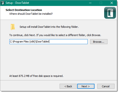 - Execute the installer on the computer where you wish to run Door Tablet from. This can be on the same computer running your Exchange Server or any other computer which can "see" your Exchange server over port 80. You may need to update your host file on the Door Tablet server