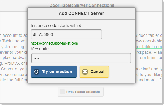 A Door Tablet client can connect to your Door Tablet instance on CONNECT in a similar way you will connect to any other Door Tablet server. There are some important differences: