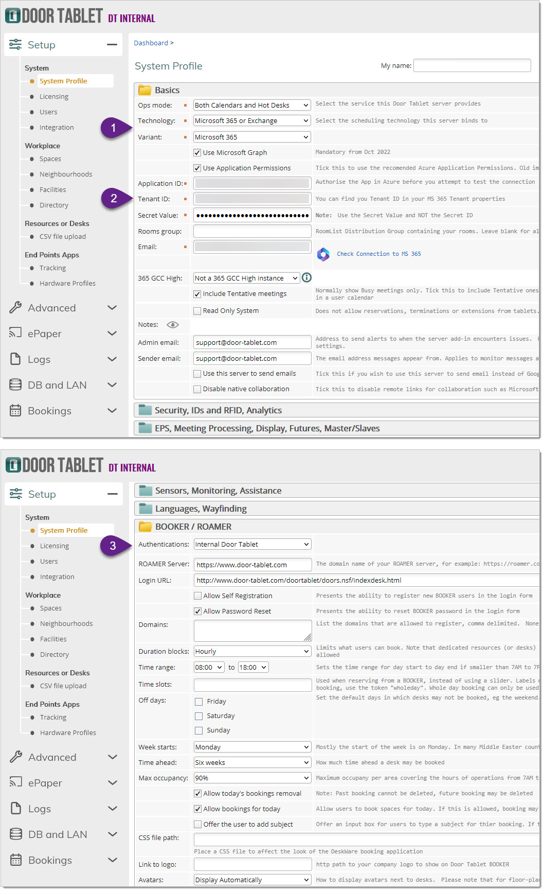 - In the BOOKER section, set the system to use Internal Door Tablet
